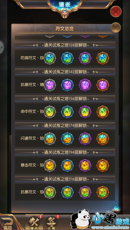 不同的符文有不同的属性加成,有攻击符文、生命符文、抗暴符文等,均可增强玩家在游戏中的战斗力。