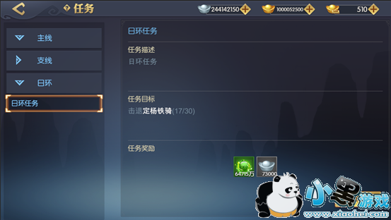 日环任务每日能做20次,完成之后可以获得几百万银两。