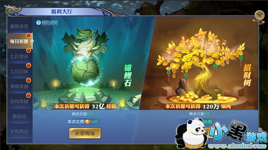 每日祈愿中的招财树一次就可以获得120万银两,每日都有免费次数,还可以通过消耗元宝获得更多银两,是获取银两最便捷的方式,人品爆发还可以打折。