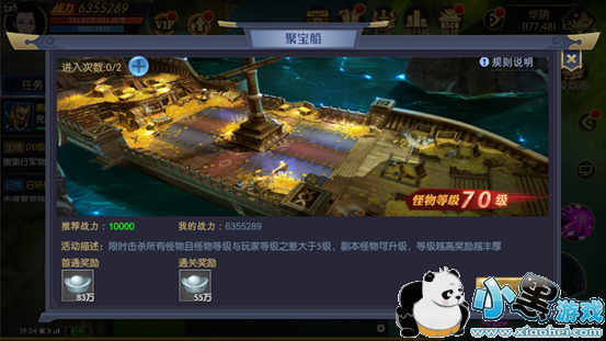 聚宝船是游戏中提供银两来源的单人副本玩法,累计击败100只小怪将迎来BOSS挑战,击败BOSS即可通过副本获得大量银两奖励。