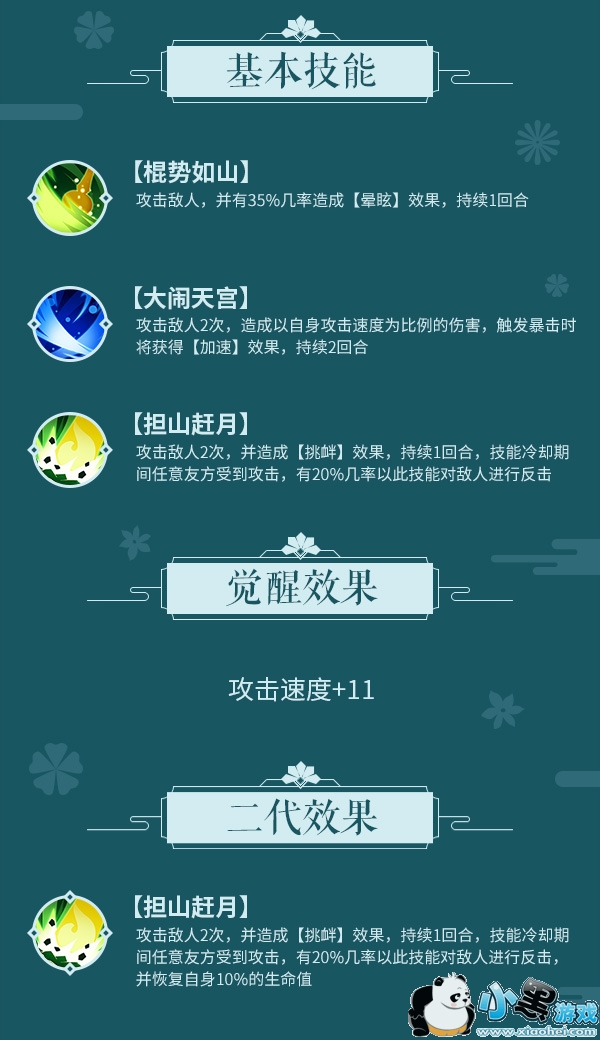 暗美猴王觉醒真名齐天大圣,爆炸的单体输出搭配窃取buff的特殊效果,使其如虎添翼。