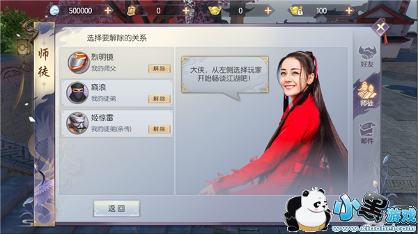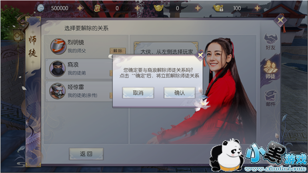 解除师徒关系非常快速便捷,只需要点击