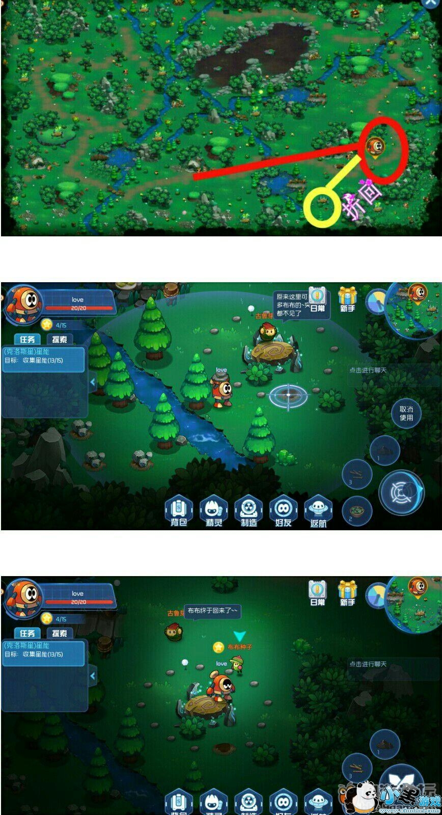 折回到上图中标记的地点会看到一个小石洞,然后把小石块扔进小石洞里就能见到布布种子啦。