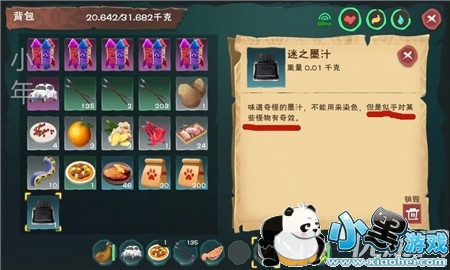 迷之墨汁配合炸弹果可以做出新道具:手持墨汁炸弹 击晕飞龙必不可少的工具(炸弹果可砍炸弹树捡取)