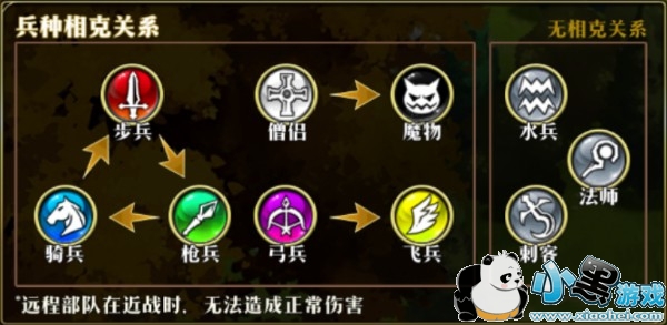 【特别提示】:除了以上的克制关系以外,远程部队在近战时攻击会下降。