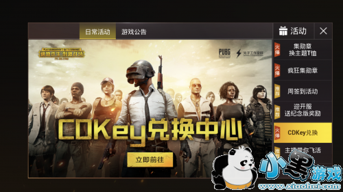 1.在主界面右下角有一个“活动”选项,打开“活动”,右方有CDKey兑换,点击立即前往。