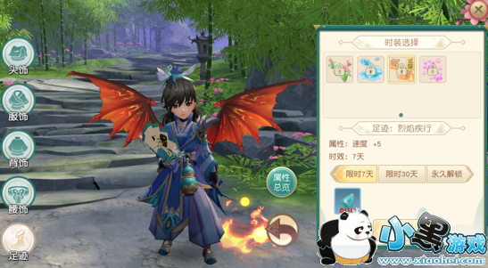 时装一共有5个部位可以个性化装扮:头饰、服饰、背饰、腰饰、足迹。