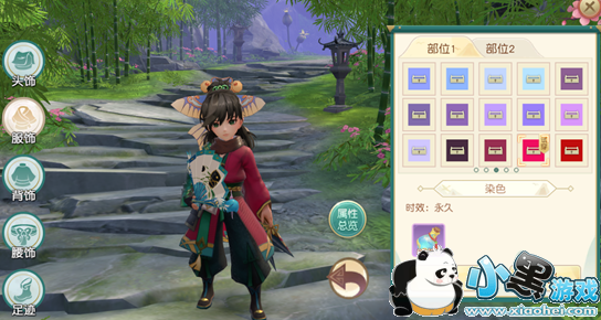 大侠可以对头饰和服饰进行染色,几十种颜色可供选择。其中两个部分服饰可以分别染色,染色需要消耗染料。