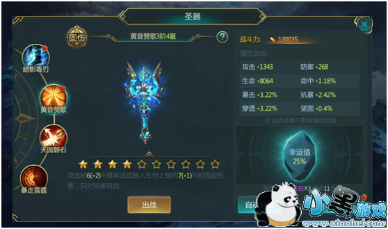 圣器分为四种,每个圣器有自己的独特的辅助效果,减速,固伤,反弹伤害等