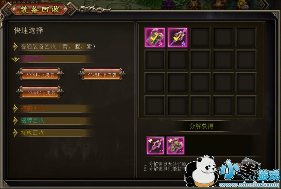 3)分解后的材料可以去兑换更高级的更好的装备