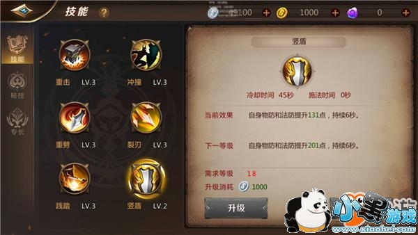 【解析】:作为BUFF技能,竖盾能够提供巨额的双防并且持续6s,冲撞过去后立马开启竖盾,可以很好的抵挡一部分集火伤害,但是长达45s的CD时间也让战士的防御变得十分有限。