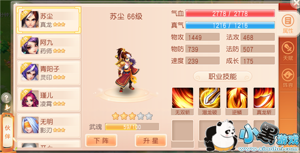 伙伴可以花费一定的银两升级相应的技能,部分技能需要升星后才能解锁
