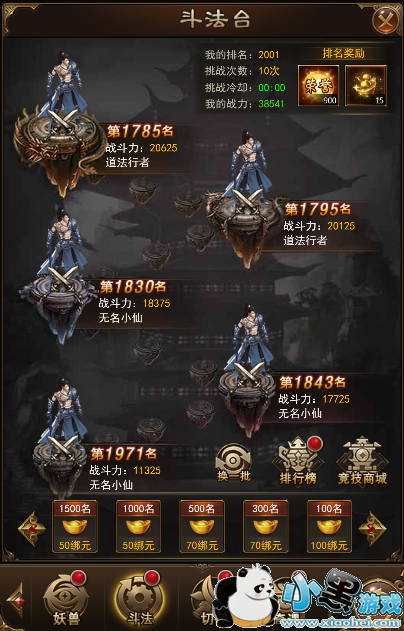 1)与排行榜上的玩家进行比武,达到相应排名可领取绑元;