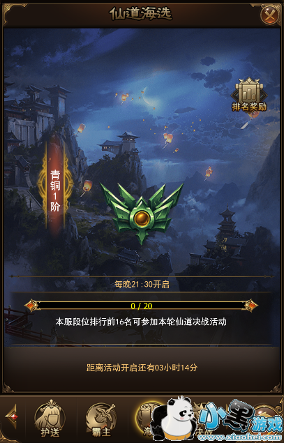 1)仙道海选后,本服段位前16位可以参加本轮仙道决战;