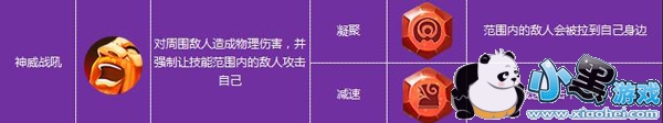 神威战吼(符文:凝聚)拳刹的招牌技能,嘲讽加聚怪,必带