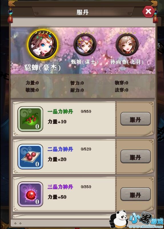 丹药类型分为:力神丹(增加力量属性)