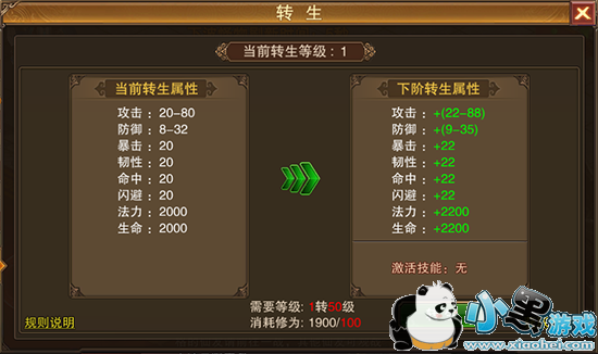 转生可获得转生属性加成。