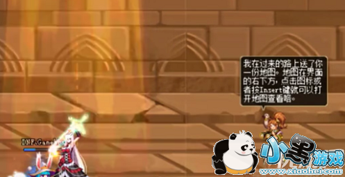 进入地下城后,会有一个NPC给你提示给了你一份地图,点击图标即可打开地图查看。