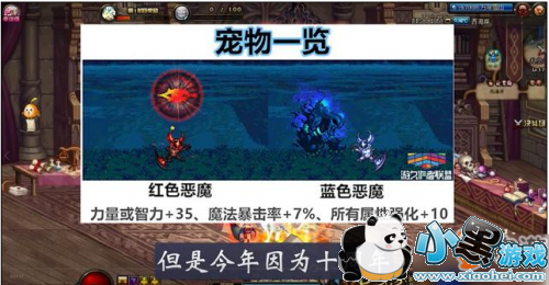 接下来我们再来给大家,看一下这套时装的宠物,宠物的话是红色恶魔和蓝色恶魔,国庆套历年是没有宠物的,但是今年因为十周年,所以可能会加入今年超时空团本的特色