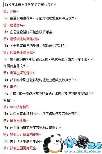 逆水寒科举答题答案大全: