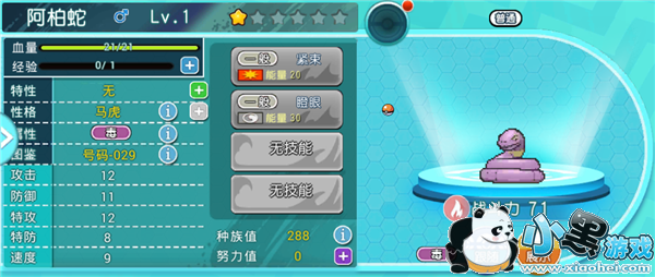 阿柏蛇的图鉴号码为029,种族值为288,以物攻和速度见长。
