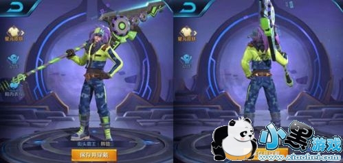 而碧绿电音模型如下,武器和急速电音是一样的,其他部件都是紫色品质。预计这两款星元皮肤的价格在500点券左右,当然也可以通过许愿屋,免费获得一些部件。