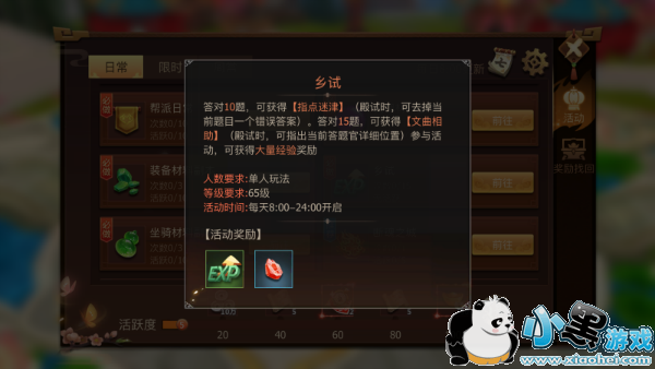 乡试是古剑二的每日玩法之一,玩家可以通过15道题的回答,获得大量经验、银币,答对10道题以上还会获得灵石奖励哦!