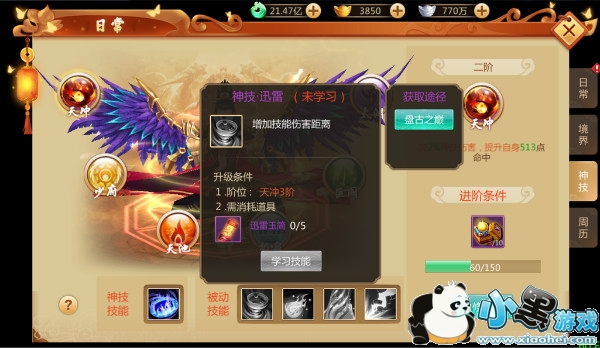 使用神技的技能玉简,并达到对应的神技孔位之后,可以学习神技被动技能,进一步的加强神技。