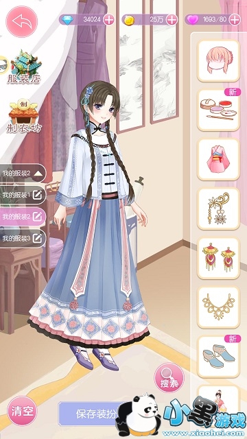 《锦绣奇缘》第二套服饰方案:双飞翼、欢颜、云纹绉长袍、桑雨、蓝宝石珍珠、冰凝霜、笔墨绘丹青。这一套服饰以宽袖上衣和百褶裙为主,妆发可爱活泼,配饰简约。