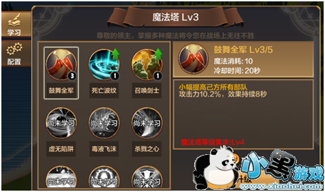 魔法塔用于领主学习和配置魔法的建筑,升级魔法塔可以让领主学会更多的魔法,快来提升更多的魔法,去勇敢的战斗吧~~~