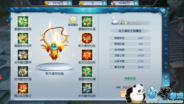 拥有神装之后,可通过消耗相应部位的神装对神装进行升级,升级神装可永久性增加主角属性。