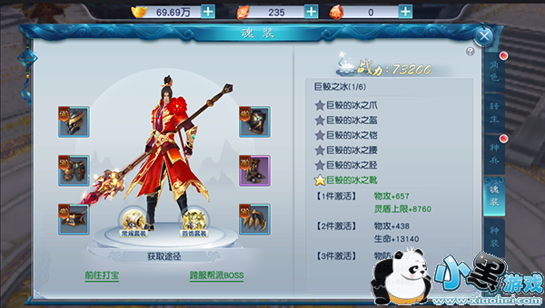 当玩家达到对应等级后,开放魂装系统,点击角色-魂装即可开始激活魂装提升战力,其中魂装分为常规套装以及首饰套装,常规套装一共6个部位,需要消耗对应的魂装石即可激活相应部位的装备,同时还可以消耗魂装石升级套装。