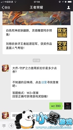 大乔-守护之力首周折扣价是多少点券?(答题格式:WZ+答案)