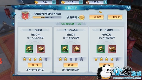 每天12轮贵族任务,专享海量经验以及免费vip贵族经验。