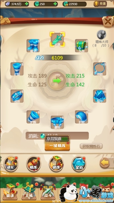 《精炼》所需物品:精炼石。精准的对我们的装备进行提升,当我们完成了精炼大师,还有防御的加成哦!