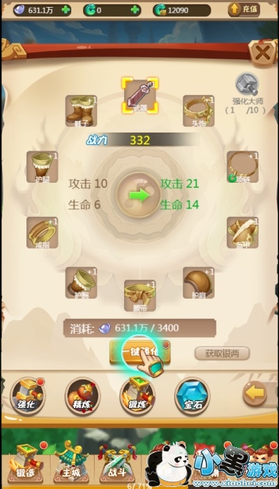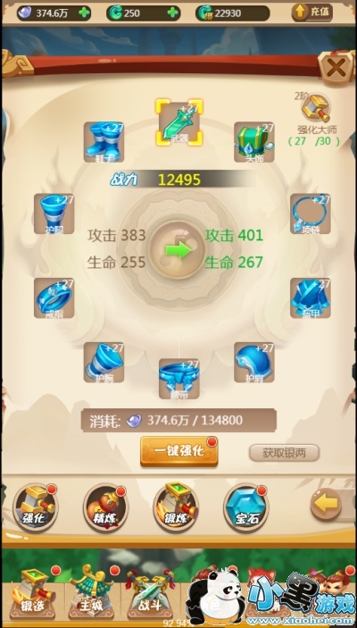 当我们打到25级时可以根据主线的任务正式进入《锻造系统》,进去之后可以直接一键强化,是不是很方便呢。
