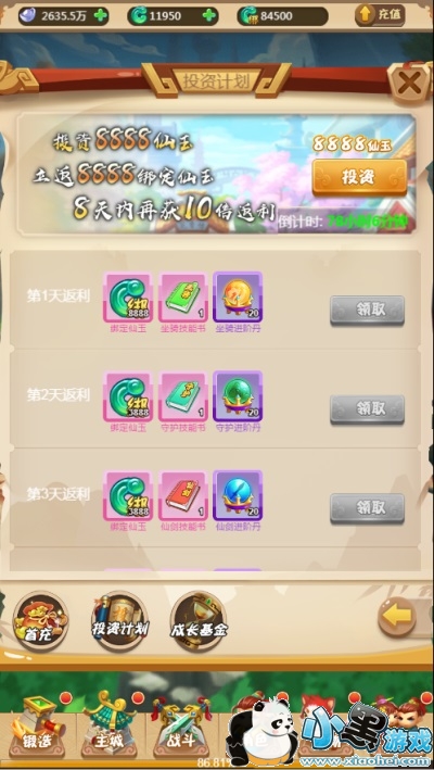【成长基金】:获得10倍的升级返利只需投资20000仙玉。