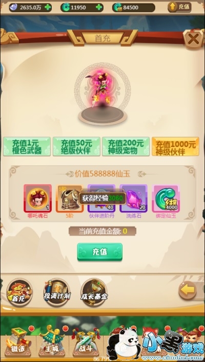 【首冲】:金额越高获得的奖励越丰富,更有红伙伴哪吒相送。