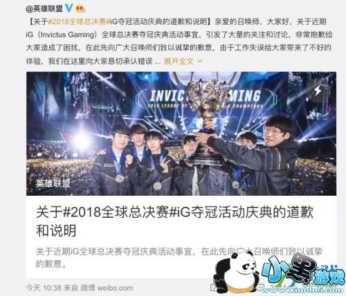 关于近期iG(Invictus Gaming)全球总决赛夺冠庆典活动事宜,引发了大量的关注和讨论,非常抱歉给大家造成了困扰,在此先向广大召唤师们致以诚挚的歉意,由于工作失误给大家带来了不好的体验,我们在这里向大家恳切承认错误。
