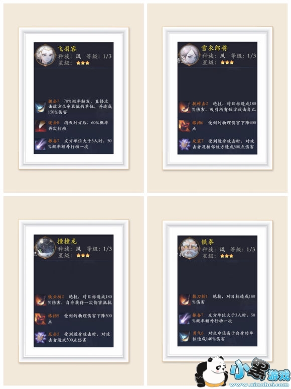 雪衣神将:妖典合成,前期副本PK必备肉盾,嘲讽反伤在前期能力突出,缺点,输出低,嘲讽也是第二回合才释放,过渡妖灵。