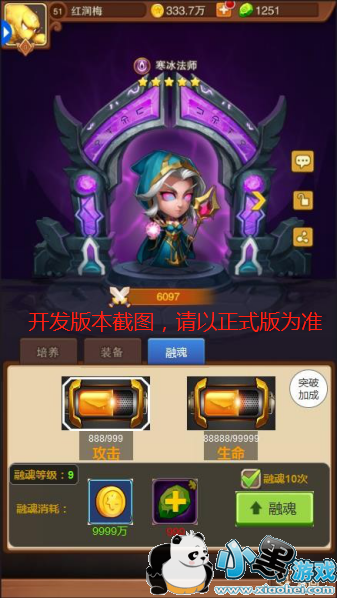 4、融魂的属性不能超过上限值,若两种属性全部达到了上限,则进入突破流程。不同英雄的上限值也不同的哦~