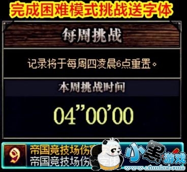 点击每周挑战按钮后就会出现一个叫“帝国竞技场困难模式每周挑战”的页面,可以看到本周帝国竞技场困难模式的挑战时间。