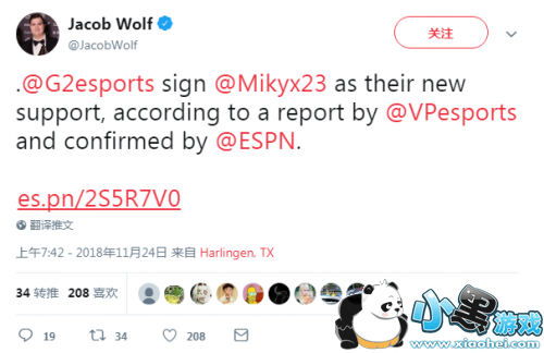“G2签约了Mikyx(原MSF辅助)作为他们的新辅助,消息来源于VPesports,然后ESPN确认了这个消息。”