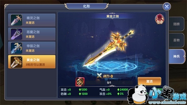 神兵可消耗指定材料来激活幻形,幻形材料通过特殊活动获得,重复获得同一幻形材料时,可对幻形进行升星。