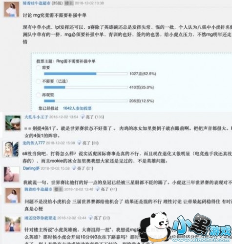 这不在年度盛典Uzi与ming拿下年度最佳下路之后,就有网友在论坛中聊起了这个话题,有网友指出“小虎在lpl发挥还可以,s赛除了英雄碗还总是发挥失常,有点混,个人认为八强中小虎排名倒数第一或倒数第二,和非洲队中单有的一拼,rng必须要补强中单,青训的也好,签约的也罢,给小虎点压力,不然rng明年还走不远,闪电狼的maple就不错。”