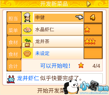 开发出新菜品后玩家还可以继续改良优化菜品的各项属性,形式与开发新菜时相同,选择合适的食材来开发即可提高原菜品的各项数值。