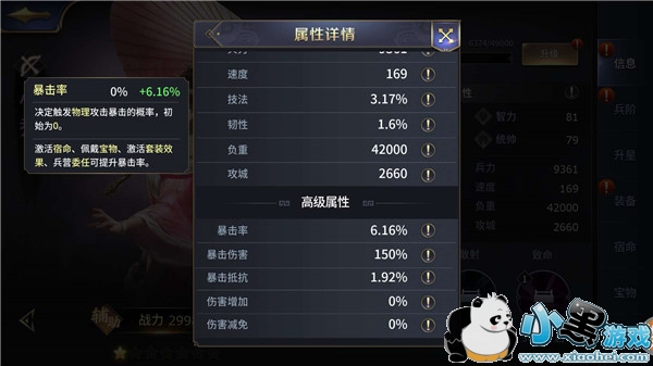 暴击率:决定触发物理攻击暴击的概率,初始为0。(激活宿命、佩戴宝物、激活套装效果、兵营委任可提升暴击率)