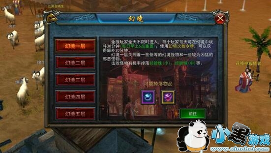 幻境分材料幻境和装备幻境,1-7层每一层产出材料是固定分类的,玩家根据自己所需进入不同层数。其中BOSS层(又叫装备层8-13层)必须要VIP等级达到N级或是花费N元宝才能进入,装备及高级材料掉率翻倍