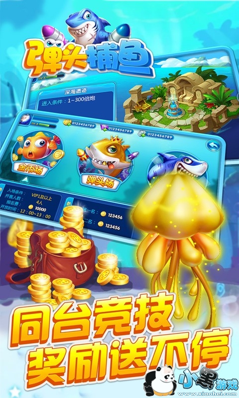 杀死BOSS,完成捕鱼任务,各种惊喜等着你!官方捕鱼千炮版正式上线,数千万名捕鱼玩家强烈推荐!创新的游戏玩法,更高的放大倍率,更多的BOSS!百万惊喜大礼物,每天免费赠送大量金币!多样化的技能,丰富的游戏玩法,更优秀的礼物等着你去抢!官方重现经典街机捕鱼,享受捕鱼盛宴!捕鱼玩家们还拥有可扩展的武器系统,更大的渔网,强大的炸弹,各种各样的地雷,使用它们,你将成为最闪亮的捕鱼之星!