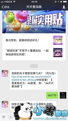 目前的关卡更新到第几关?天天爱消除经典模式中的关卡闯关玩法相信许多玩家都在体验,对于关卡的了解程度都比较熟悉,经常会更新新的关卡,那么今天微信公众号答题玩法的答案就可以在游戏中发现哦。
